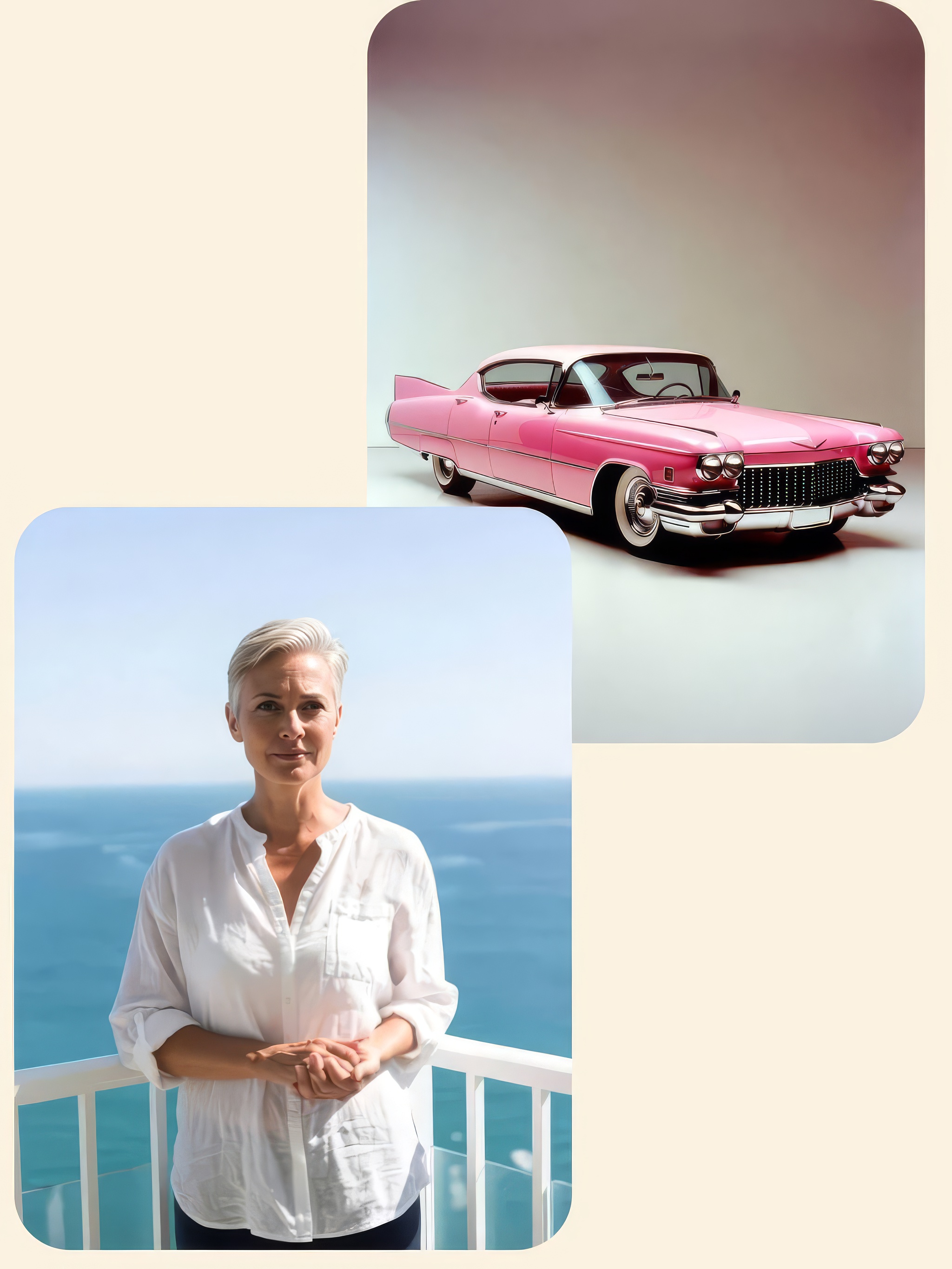 Perhaps, your wife has always wanted a pink Cadillac. While you may not be able to give her a real Cadillac, you can give your wonderful wife an AI generated image of her leaning up against the beautiful pink Cadillac of her dreams!